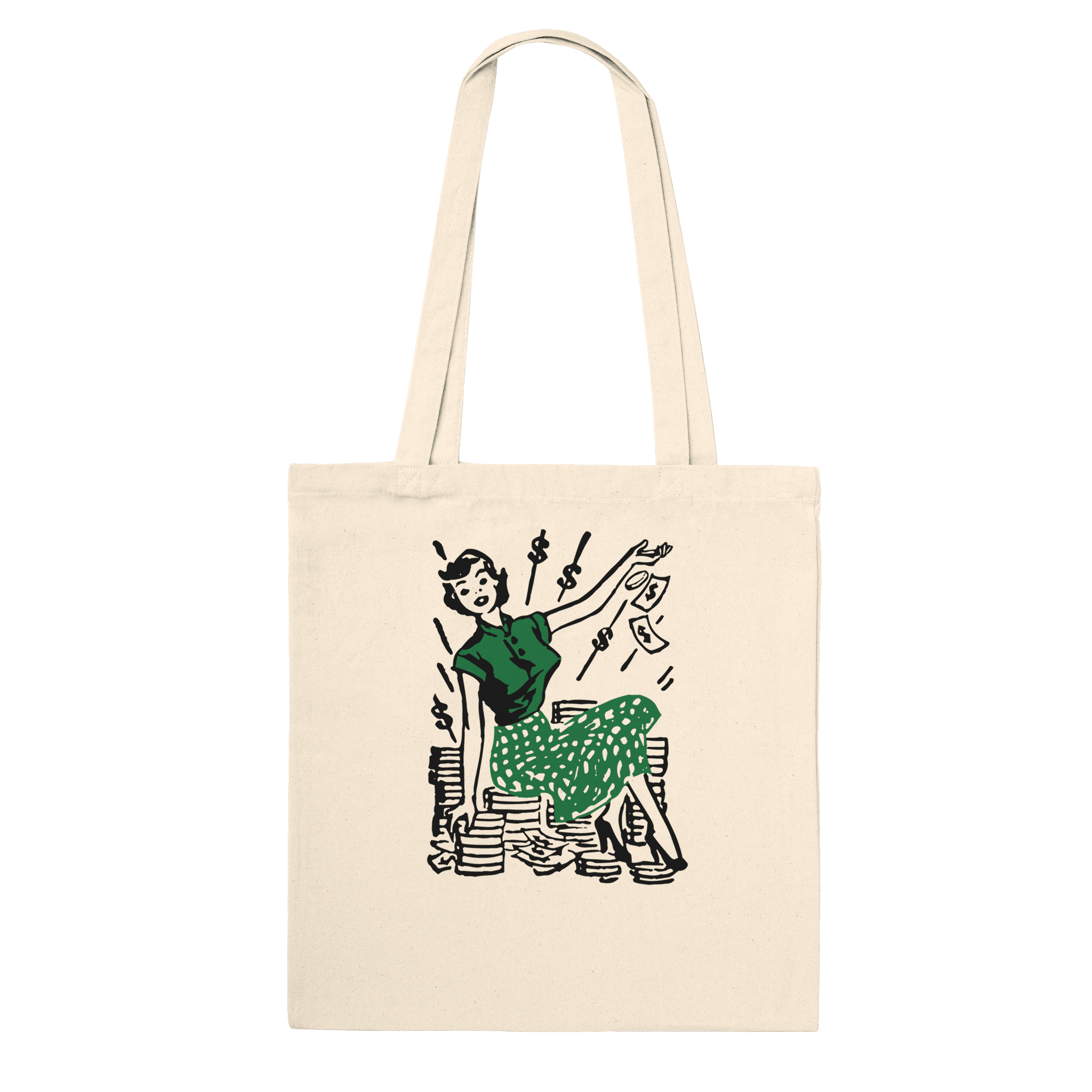 Relive the charm of a bygone era with our Retro Finance Cotton Tote Bag.This vintage-inspired design captures the elegance and sophistication of counting money, making it the perfect accessory for those who appreciate a touch of nostalgia.